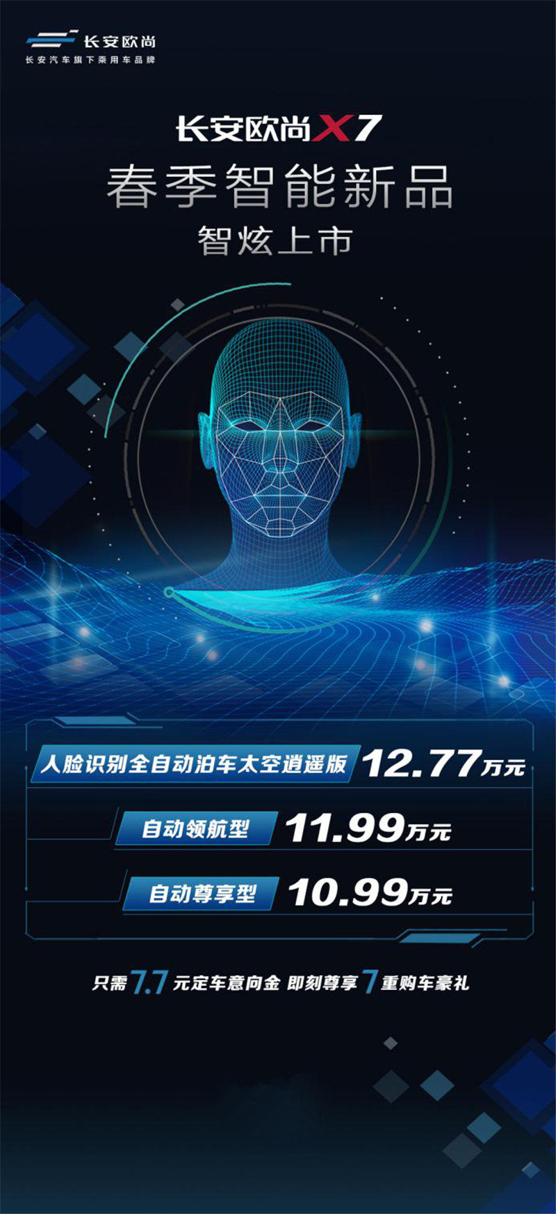 新车融行业领先智能科技于一身,承袭长安欧尚X7当红品质,带来自动尊享型、自动领航型、人脸识别全自动泊车太空逍遥版三款新车型,分别以10.99万元、11.99万元和12.77万元的亲民售价,为中国消费者呈现更适合中国人的智能SUV超值之选。