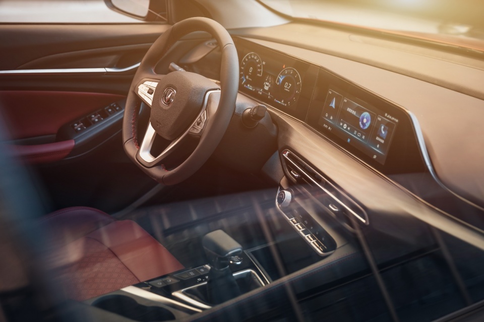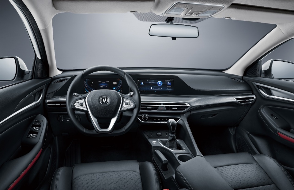 除了自主品牌同级中首次搭载的全景天窗,车内最抢眼的自然是一体式双10.25英寸、1920*720分辨率全高清液晶触摸大屏,中控大屏向驾驶席侧倾斜10°,防止光源干扰,避免出现眩光。不管是安卓还是IOS系统用户都可以通过WiFi或者数据线连接进行投屏。车机系统还搭载同级首发的“央视影音”APP,集新闻资讯、视频观看、电视直播于一体,通过热点或WiFi连接后即可使用。通过该APP可以观看体育赛事、娱乐综艺、新闻资讯、等多种权威专业内容,覆盖央视全部频道。