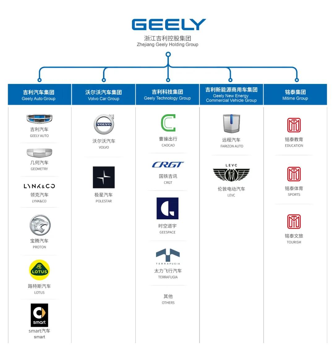 严格来说,枫叶汽车和吉利汽车并没有关系。从浙江吉利控股集团的架构图可以看到,吉利汽车集团下有吉利汽车、集合汽车、领克汽车、宝腾汽车、路特斯汽车、smart汽车。至于枫叶汽车,它并不是吉利汽车集团下的一个全新汽车品牌,它的母公司是枫盛汽车科技集团有限公司,隶属于吉利科技集团。在吉利科技集团下,有曹操出行、太力飞行汽车等。