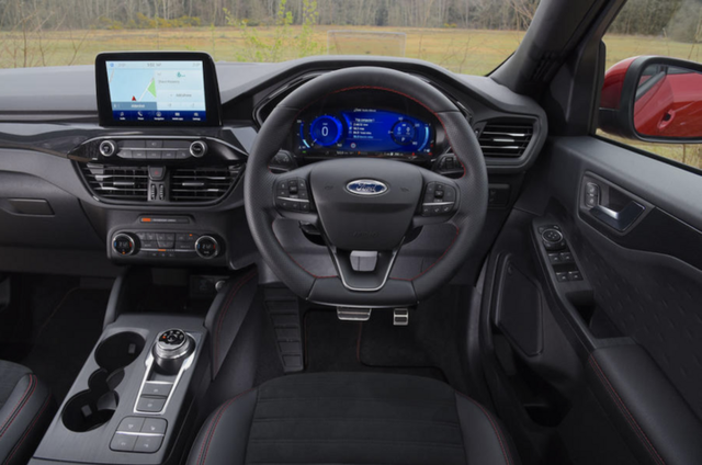 内饰方面,内饰设计上,车内采用了家族式设计语言,以纯黑色作为车内基础颜色,并搭载了8英寸的悬浮式中控屏+12.3英寸LCD液晶仪表盘和旋钮式档把设计,内置SYNC 3车机系统,增强车内科技感。中控屏下方为一个六边形开孔设计,内部则为空调出风口以及旋钮式空调按键,层次感十足。还将有B&O音响系统供选择。车内保留了部分常用的物理按键,方便车主进行盲操。
