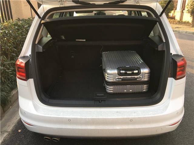 我们打开高尔夫嘉旅的后备箱,它的容积达到了500L,这个空间表现虽然一般,但好在开口比较大,并且后排座椅还可以按照4:2:4的方式灵活放倒,甚至就连前排的副驾座椅也可以放倒,当需要装载更多行李时,它能把乘坐空间让出一部分给后备箱,这种灵活的操作,在大部分SUV车型上都不具备呢!这便让身为两厢车的它,一下子就变成了搬家利器。