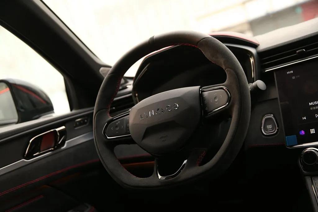 与之前相同的是,领克05采用了环抱式驾舱设计,并依旧将中控屏幕偏向于主驾驶方向。而不同的是,05时间限量版的方向盘按键有所变化,比起普通版的低配车型,05时间限量版带有自适应巡航、领航,及限制最高车速功能。