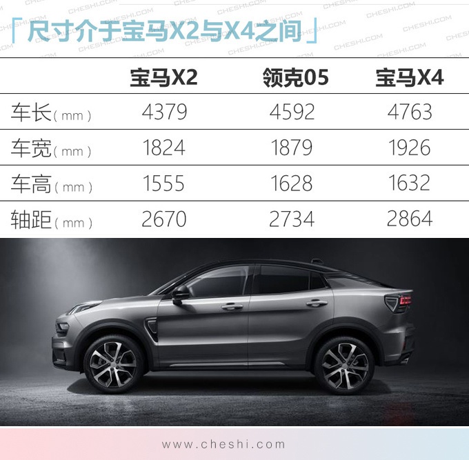 作为一款轿跑SUV,也许很多人会对领克05的头部空间有所担心。但事实证明,这种担心其实完全没有必要。新车与领克01的轴距保持一致,但车身尺寸更大,整体介于同类产品宝马X2与宝马X4之间。