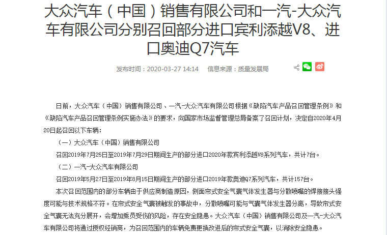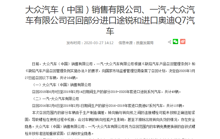 本次召回涉及品牌、车型众多,从豪华车到性价比产品,从SUV到轿车无一幸免。