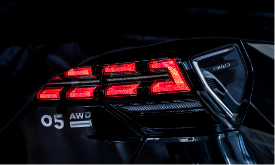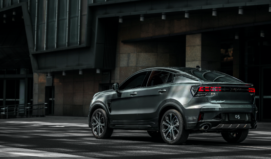 车身侧面,领克05侧面是它最大的亮点,作为一台轿跑SUV,从A柱向后延伸一直到D柱,一条光滑的曲线从头至尾。车窗采用亮黑色的边框,D柱上还有一个宽大的装饰面板,上面有几条凹槽,勾勒出溜背造型的轮廓。全新的20英寸哑光黑运动轮圈是限量版车型的独有配置。车尾还有专属的“limited edition”标识。