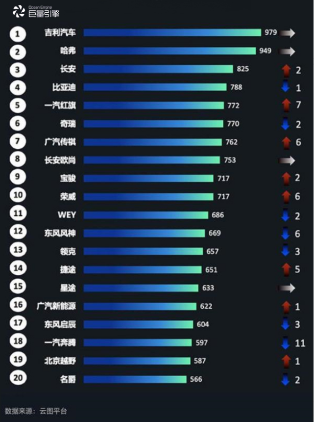 水滴汽车APP注意到,本期巨量引擎舆情月报特别提及,“受到品牌发声、经销商动作等因素影响,品牌影响力指数排名上涨幅度较高”,长安汽车正是其中的佼佼者。从具体排名看,2020年2月品牌影响力指数榜单中,长安汽车跃升两位,一举夺得本期榜单第三名。