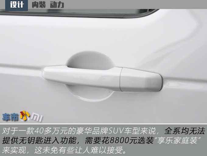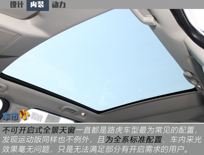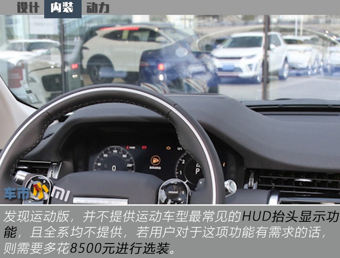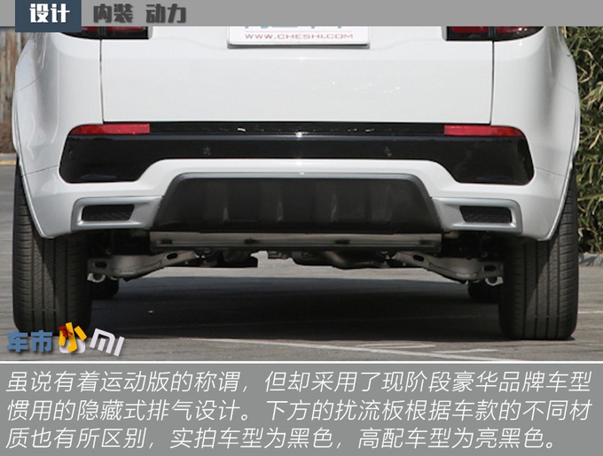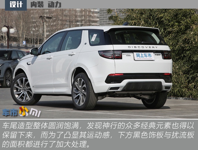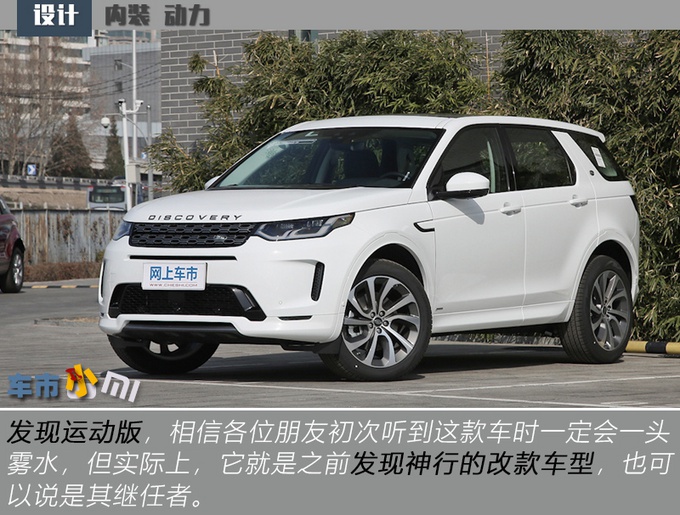 中期改款将车名也更换的车型并不多见,外观方面, 发现运动版在发现神行基础上进行了相应的运动化改变,但整体样貌并未改变依旧拥有路虎车型的气场。而我们实拍的车型属于2.0T高功率版车型,需要注意的是它们均提供外观运动套件,所以单凭外观无法区分出车型配置的高低,并且发现运动版选装配置非常之丰富,客制化程度极高,这样一来更无法分辨出车款。但有一点我个人无法接受,40万的车无钥匙进入功能需要选装。