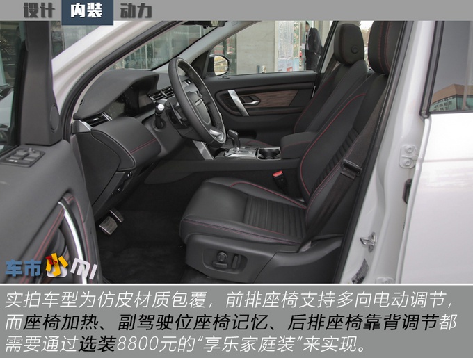 作为一台路虎的入门级车型,发现运动版内饰在设计与质感方面都可圈可点。配置方面,来到40万元的价位,发现运动版提供的双大屏、前排座椅电动调节、InControl 智能驭领系统、电动后备厢/位置记忆都很有优势可言。若想拥有更集中的体验同样也有花大手笔去选装,而在这其中,个人推荐选装8800元的“乐享家庭装”,包含前排座椅12向电动调节、方向盘加热、三区自动加热和无钥匙进入功能,性价比超高。至于选装第三排座椅则完全没有必要,价格高不说,其用途与实际体验也不理想。