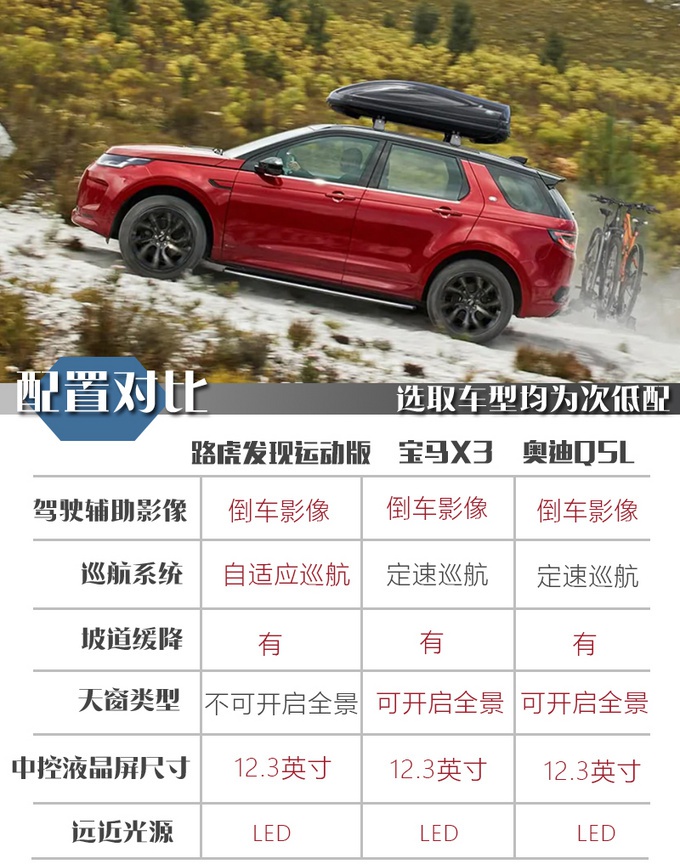 发现运动版车型全系搭载2.0T发动机(分为高低功率)+48V轻混系统,与之匹配的是9AT变速箱,且全系均为全时四驱,官方指导价为35.68-45.58万元。我们实拍的249PS R-Dynamic SE 性能科技版 5座车型为2.0T高功率版次低配车型,售价为41.18万元。别看其指导价偏高,但按照路虎一贯的风格,之后的终端优惠都会非常给力。而从配置上来看,发现运动版车型与竞品旗鼓相当,毕竟同为豪华品牌,不过发现运动版相比之下越野性能更出色。