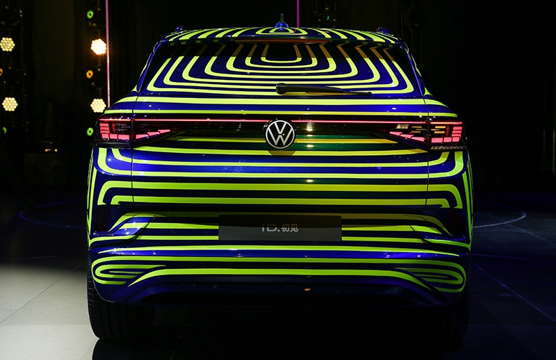 造型造型方面,一汽-大众ID.初见延续了ID.3 的设计语言。前脸部分,两侧线条狭长犀利的大灯组被贯穿式LED灯带连接,符合当下设计流行趋势,非常时尚年轻,下保险杠向外凸出,略显攻击性,前脸运动气息浓厚。