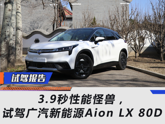 广汽新能源Aion LX (配置|询价)虽然早在去年就已上市,但作为国内为数不多的高端SUV车型,至今依旧有很大的话题性。近期,我们深度试驾了最新上市的Aion LX 80D(也就是四驱版本车型),相比去年的两驱版本,此次80D四驱版最大的变化就是驱动方式的升级,采用了前后双电机四驱的配置,最大功率为300kW,最大扭矩700N·m,轮端扭矩达到了3900N·m!根据官方数据,百公里加速达到3.9秒,毫不夸张得说是目前中国最快的量产车。简而言之,四驱版的终极目标就是性能。