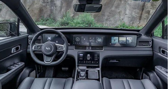 再来说说理想ONE。理想ONE的外观设计充满了阳刚硬朗的感觉,大量平直且有力的线条设计,让这款车格外有力量感。再者,理想ONE车内设计有四块中控大屏,足以让对手黯然失色。