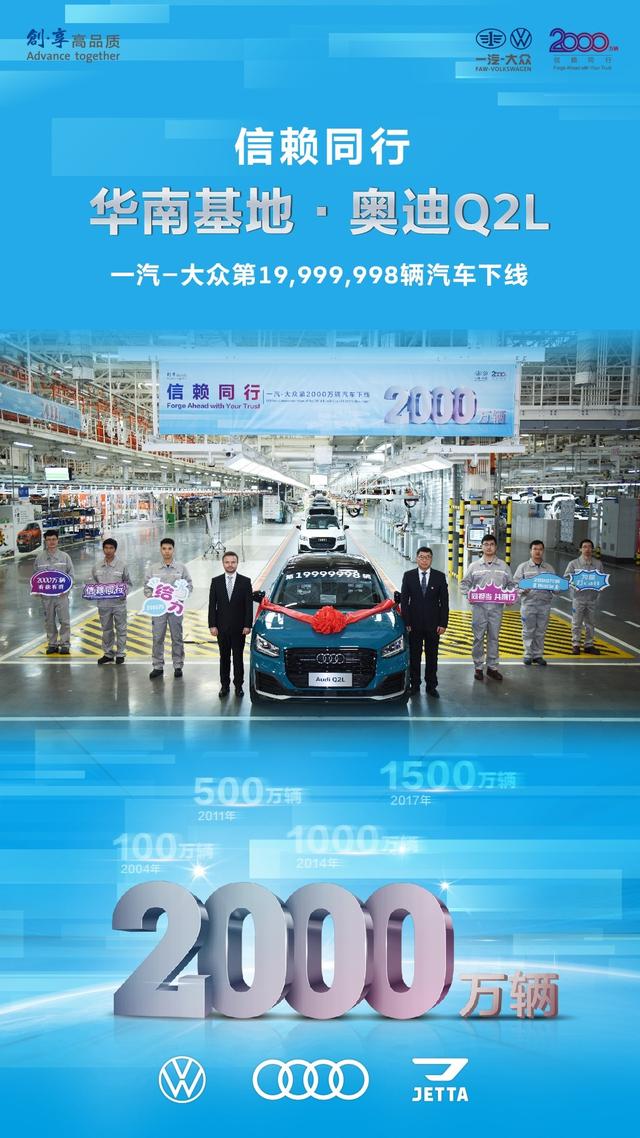 从1991年成立至今,一汽-大众伴随着国人走过了近30年的时间,而2000万辆,是一汽-大众品质的见证,也是2000万车主对一汽-大众品牌的信赖。相信在车市下行的2019年都能成为合资第一阵营中唯一一个保持正增长的车企——一汽-大众,必定能在更短的时间内迈入下一个千万辆。