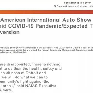 北美车展展会执行总监罗德·阿尔伯茨(Rod Alberts)在发表的声明中表示:“尽管我们感到失望,但对我们而言,没有什么比底特律和密歇根州居民的健康、安全与福祉更重要了,我们将竭尽所能来支持我们社区应对新型冠状病毒爆发的斗争。”