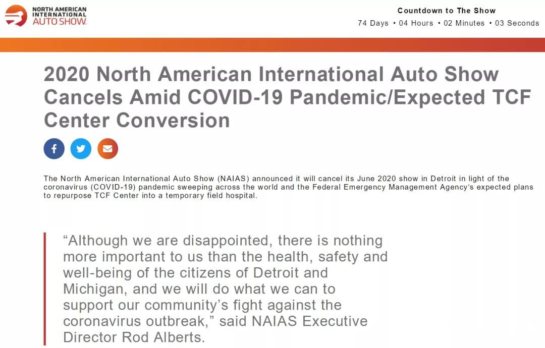 截止今日,美国已有超过14万例新冠肺炎确诊患者,而车展取消也是迫不得已。