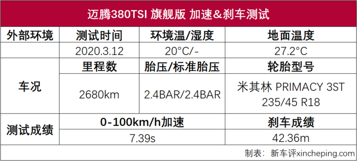 (迈腾380TSI 0——100km/h加速成绩:7.39s)