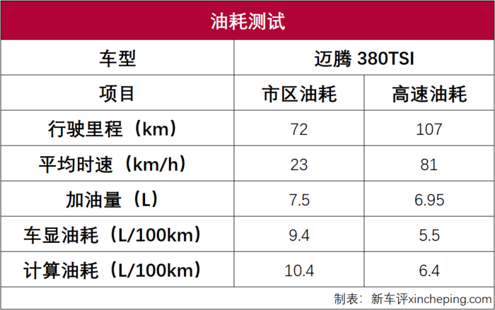 油耗测试: