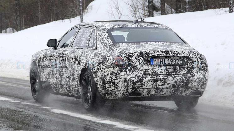 车尾的造型两台车区别不大,但是标轴版车型使用了隐藏式排气设计,而长轴版车型则为双边共两出的排气设计。动力方面,新车将继续搭载6.75T V12双涡轮增压发动机,最大功率571马力,传动方面匹配8速自动变速箱和四驱系统。值得一提的是,新车有望采用48V轻混系统和全轮转向技术。