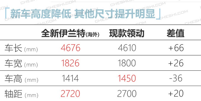 除了外观外,第七代伊兰特基于现代全新i-GMP平台打造,尺寸较第六代有所加长。目前尚未有国产版数据,以海外第七代伊兰特为例,该车相比国内现款领动加长、加宽,而车高降低了36mm,视觉观感会更加运动。新车国内上市后将会竞争本田思域 (配置|询价)、大众朗逸 (配置|询价)等合资紧凑型轿车,在尺寸上同样占有优势。
