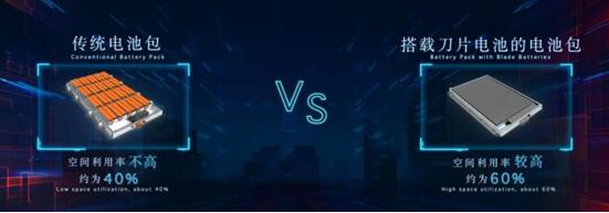而“刀片电池”将电池拉长做成刀片的结构,跳过“模组”,电池自己充当结构件,大幅提高体积利用率,整体空间利用率达到60%,比传统有“模组”的电池包提升50%以上,并且在续航里程方面与高能量三元锂电池水平相当。