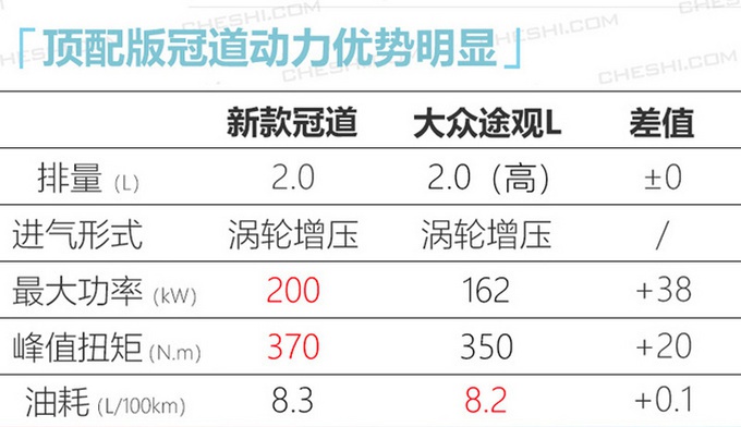 动力上新款冠道2.0T发动机升级国六排放标准,动力参数并没有降低,相比大众途观L 2.0T发动机动力更强。主打“大五座”中型SUV的新款冠道,在空间舒适度、驾乘质感、静音、音响系统等方面也进行了升级。