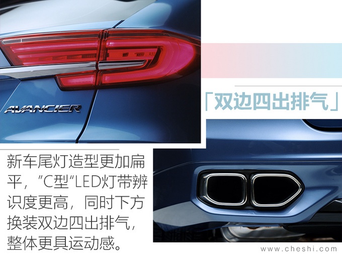 外观方面,新款冠道仅在细节方面进行调整。前脸宽厚的镀铬饰条下方,增添三条黑色饰条,进气格栅更具层次感,并新增LED流水转向灯,雾灯区域则用下凹式镀铬饰条贯穿。同时新车还增配双色车身,在高配车型上提供全新多幅式大尺寸轮毂,造型更加运动。车尾尾灯造型更加扁平,LED灯带呈“C”字造型,更为精致运动,车尾下部更新为双边共四出排气布局,整体运动气息得到了提升。