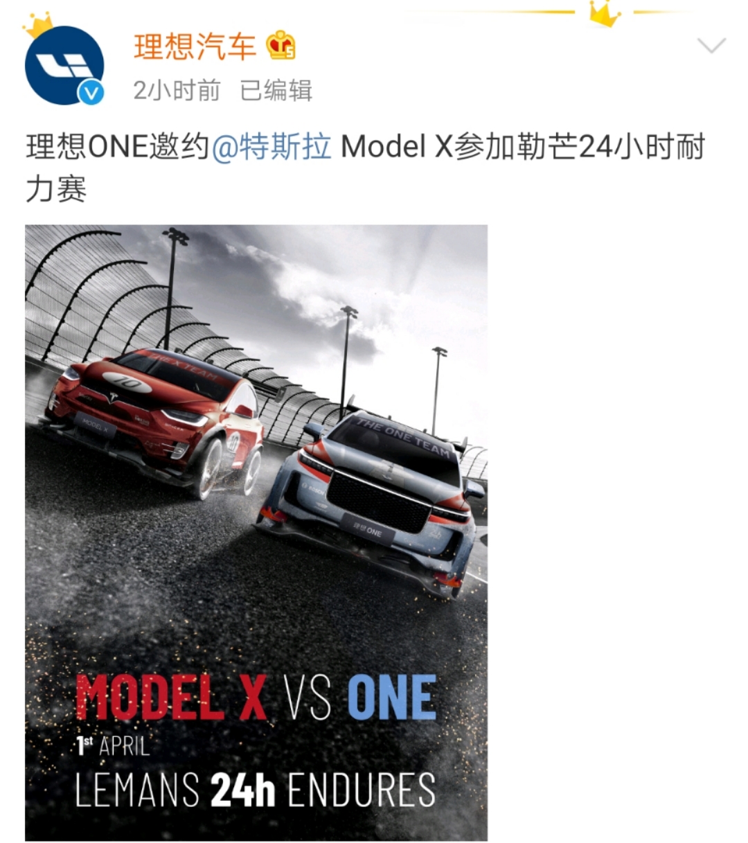 今天是4月1日,国外的愚人节,在这样一个特殊的日子里,理想汽车像特斯拉发起了“挑战”,在微博上邀约特斯拉Model X (配置|询价)参加24小时耐力赛,从精心制作的海报来看,理想汽车这一次似乎是早有“预谋”。
