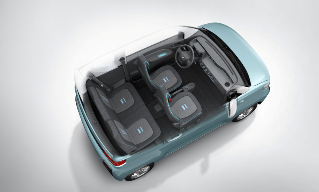 遵循这一设计思路,五菱再度推出了宏光MINI EV。宏光MINI EV可简单地看作是宝骏E100、E200的”PLUS”版本,因为其不仅体型更大,且配备了实用性更高的四座设计。