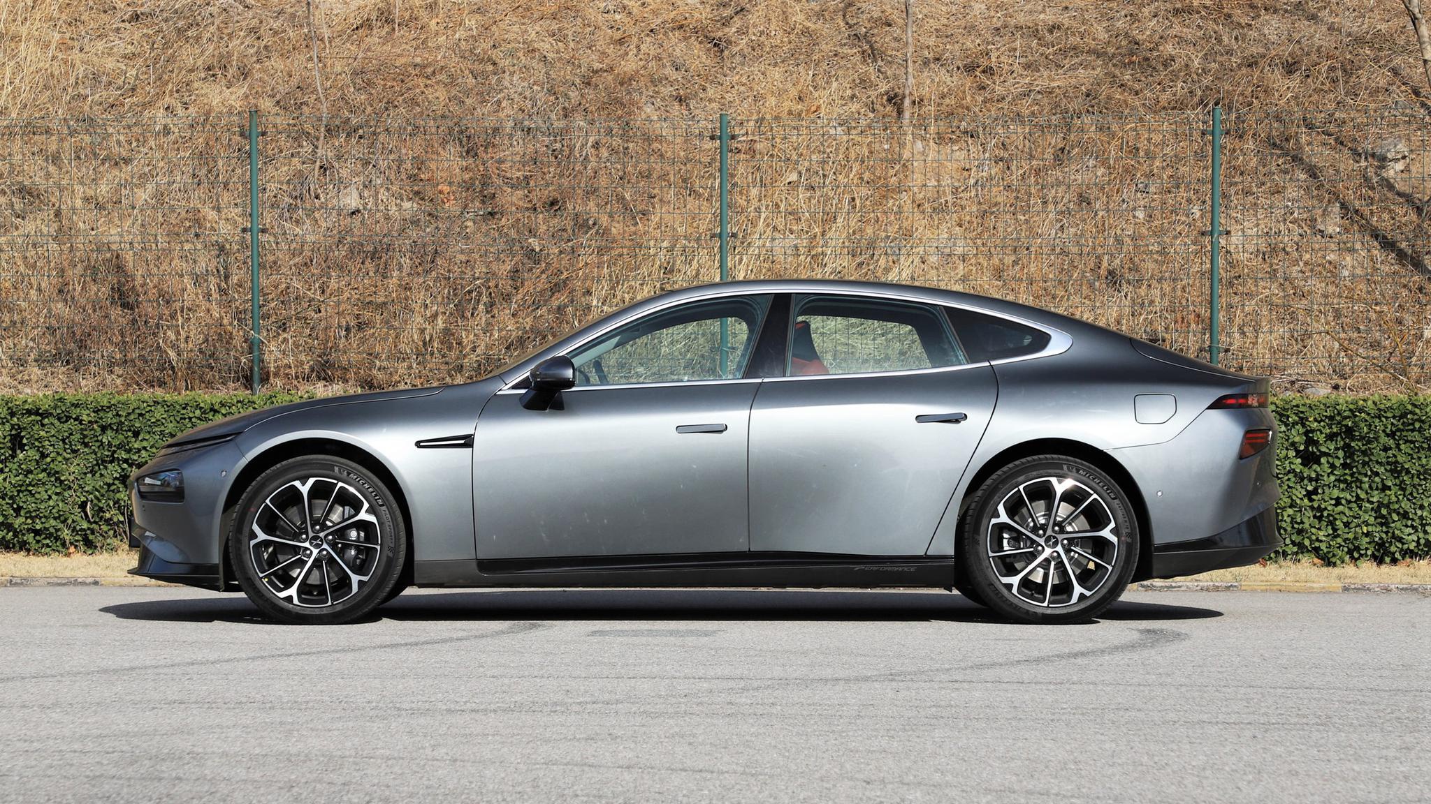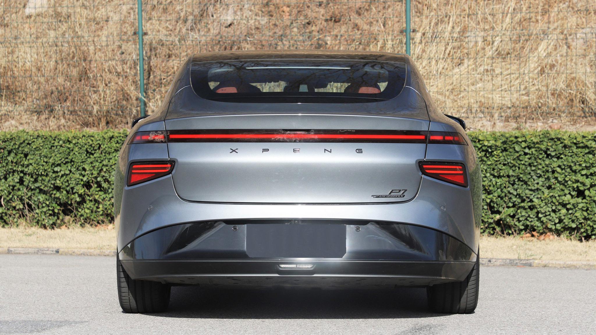 作为小鹏的第2款量产车,P7定位于中型轿车,前脸设计非常简洁,贯穿式LED日间行车灯以及分体式大灯就是前脸的全部元素了,封闭式的车头是电动车主流的设计。