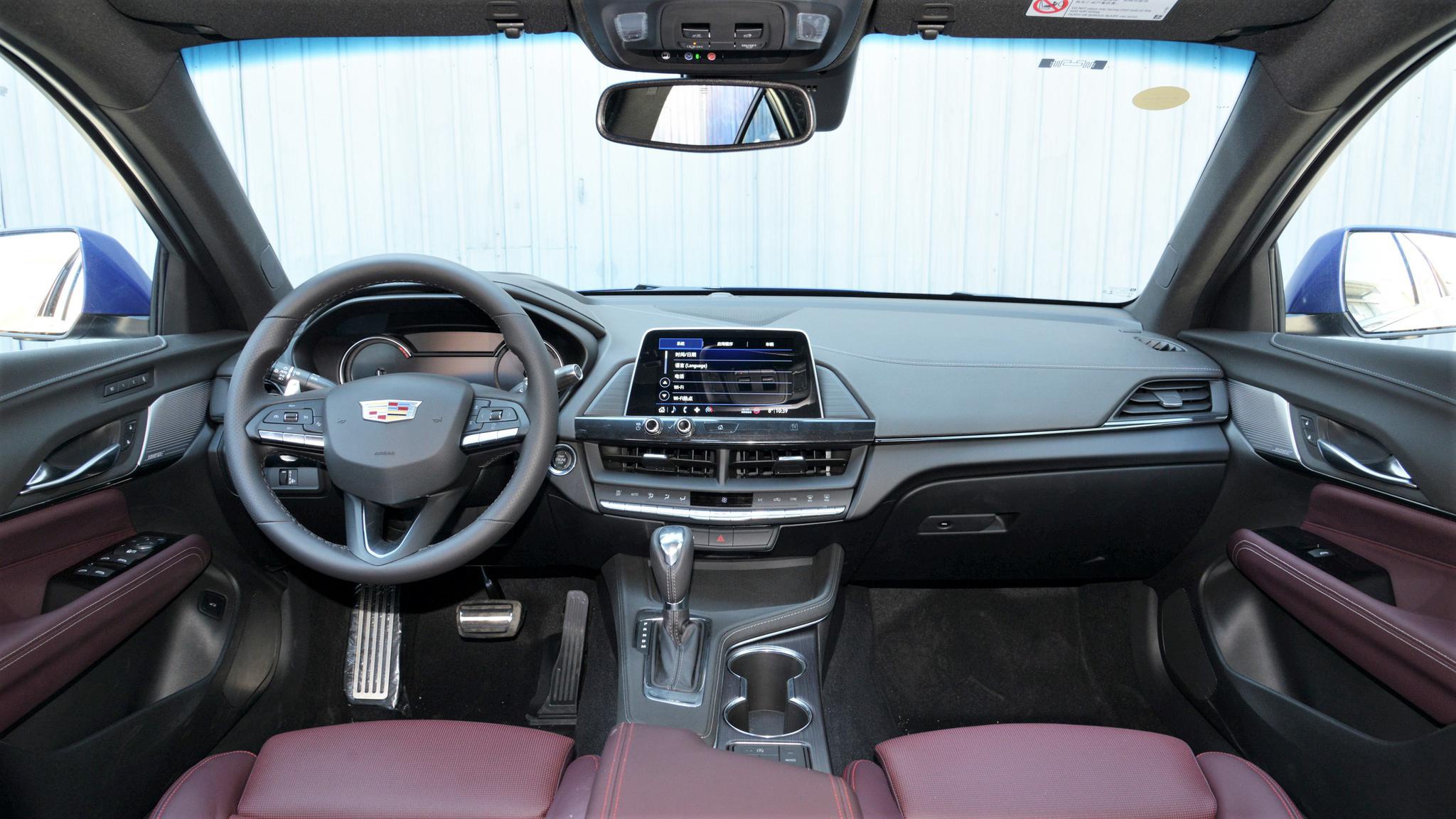 内饰没有太多惊喜,依旧是凯迪拉克家族化风格,整体以黑色为主,悬浮式中控屏尺寸只有8英寸,三幅式方向盘的造型还是比较运动的。