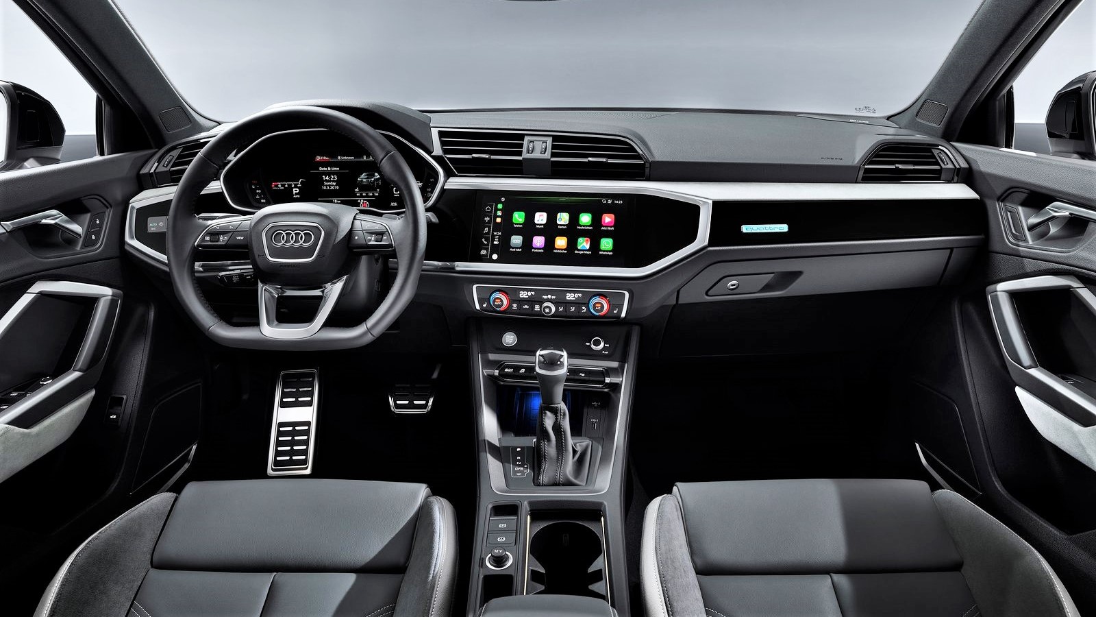 内饰风格与Q3的差别非常小,整体风格比较年轻,微微偏向驾驶员一侧的中控台能提升使用便利性。
