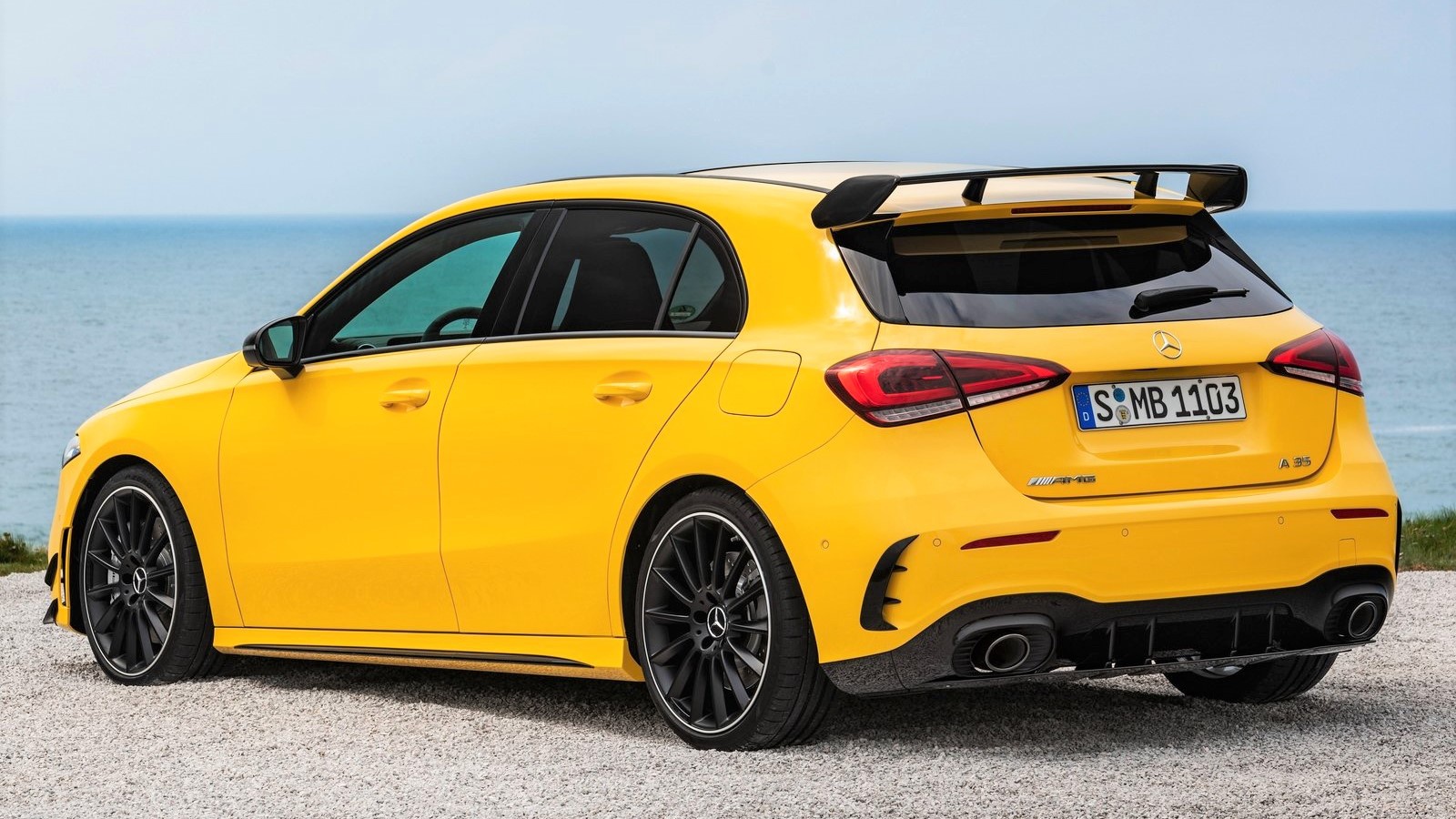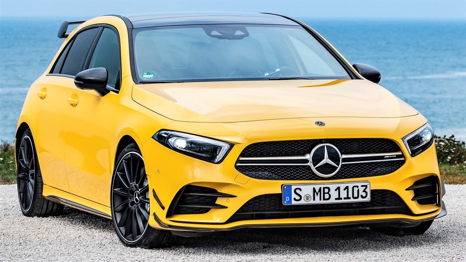 国产三厢版AMG A35L已经在去年11月的广州车展上市了,今年4月,进口两厢标轴版也将正式上市。新车的前脸设计与三厢版保持一致,奔驰大标熠熠生辉。