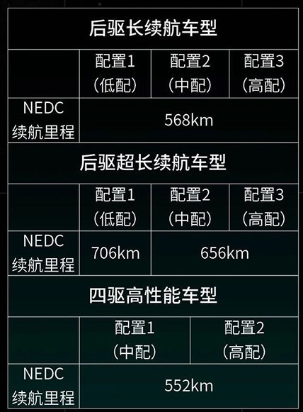 续航方面,小鹏P7拥有4种续航版本,后驱长续航版NEDC为568km,后驱超长续航版NEDC为656km,四驱性能版NEDC续航552km。值得一提的是,后驱超长续航版还有一个增加了低风阻空气套件的版本,NEDC续航可以达到惊人的706km!