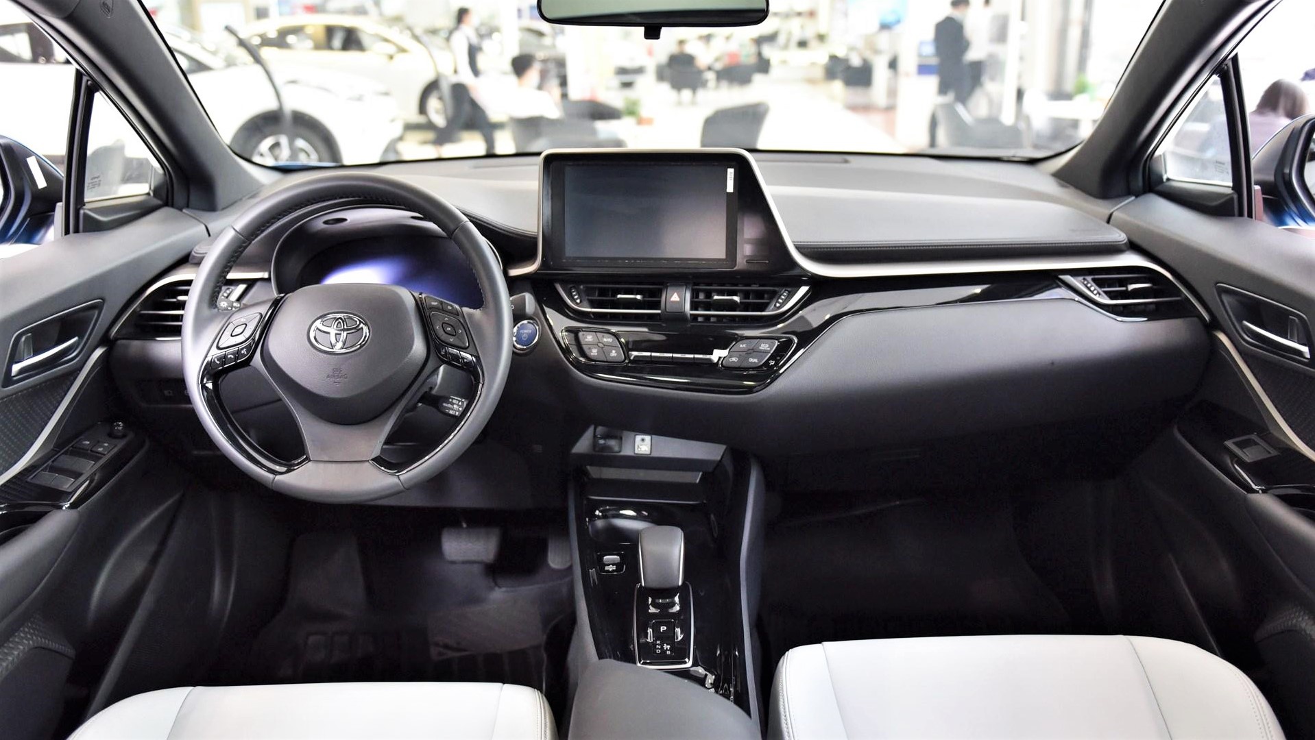 内饰的风格与燃油版保持一致,依旧是非常个性的线条设计,悬浮式大屏以及不对称式的中控台都是C-HR的标志性设计。