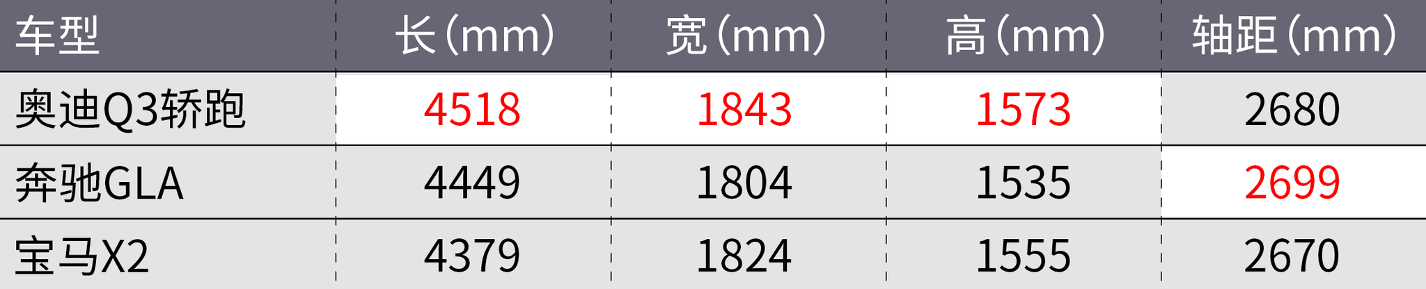 从竞品来看,Q3轿跑将会与国产的奔驰GLA以及宝马X2正面交锋,在轿跑SUV这个细分市场内继续三分天下。