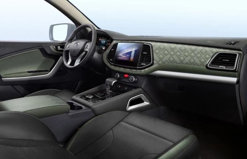新款领主的内饰设计布局采用了对称式,并在中控台以及门板的部位加入了绿色装饰色以及菱形图案,增添了时尚感。现款车型的中控液晶显示屏采用的悬浮式设计,而此次新车的中控屏则采用了内嵌式设计,并且将仪表盘也更换为全液晶材料,科技感十足。同时,新车配备有360°全景影像、行车记录仪、上坡辅助系统、侧边气囊、一键启动功能、无钥匙进入以及十向电动调节加热座椅等配置。