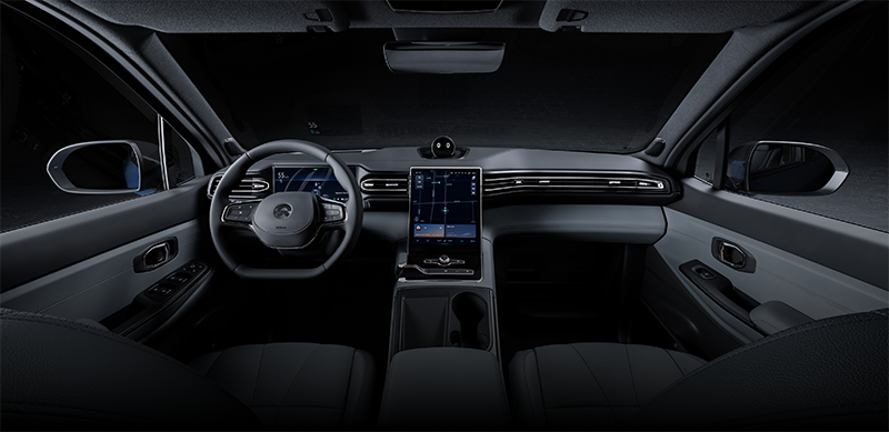 可以看到,这套新内饰的样式与蔚来在售车型上现用的的样式完全不同。中控台上贯穿的屏幕取代了现款的纵向放置的大屏幕,从效果图上来看,除了全液晶仪表盘之外,这块连屏的尺寸达到了70*16cm。另外,方向盘的样式也有所更改,多功能按键更加简洁。