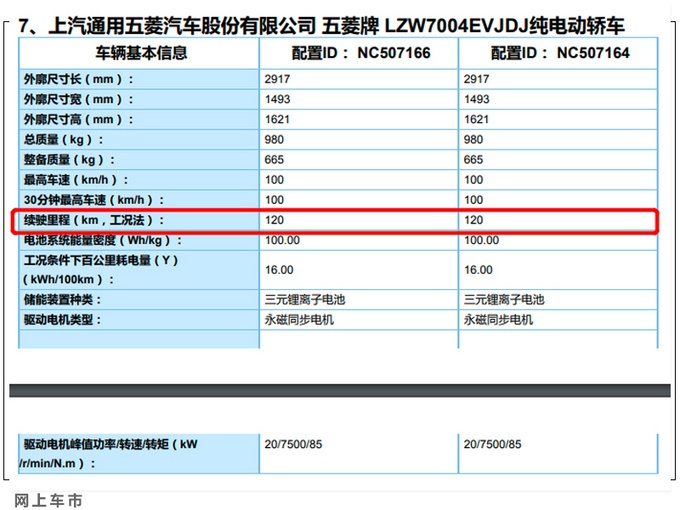 网上车市日前获得了五菱宏光 (配置|询价)MINI EV的部分参数,该车NEDC工况下续航里程共分为120km和170km两种不同版本。据了解,五菱宏光MINI EV将于今年二季度上市,竞争奇瑞小蚂蚁 (配置|询价)等同级别车型。综合竞品5.98万-7.58万元价格来看,由于新车动力、续航弱于对手,五菱宏光MINI EV预计起售价在5万元左右。