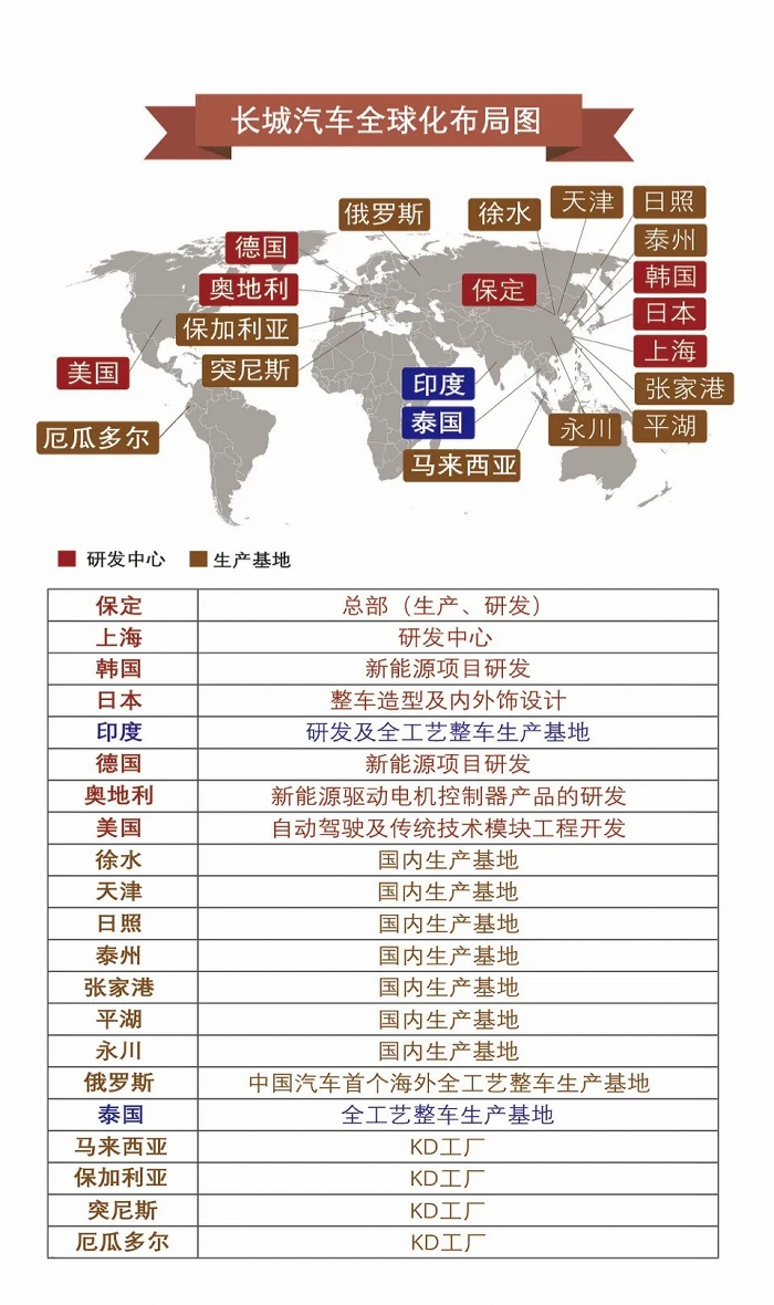 目前,在全球化思维和视野下,哈弗已经形成了研、产、销的全球化布局,有能力在全球市场赢得一席之地,甚至引领中国品牌走出国门走向世界。