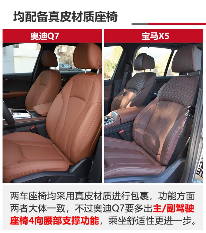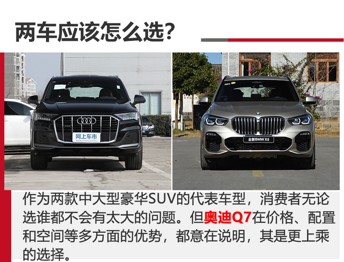 当提到奥迪Q7 (配置|询价)和宝马X5这两款车型时,众多网友们脑海中浮现出的都是“外观大气”、“价格不菲”和“豪华品牌”等词汇,并且随着而来的就是关于这两款车型谁更出色的争论。虽说这些网友中,有大量阅车无数的键盘侠,不过真正考虑在两者之间抉择的潜在买家也并不少,但这些其实无须在意。而为了给他们一个合适的答案,今天咱们就通过一场对比来一探究竟。