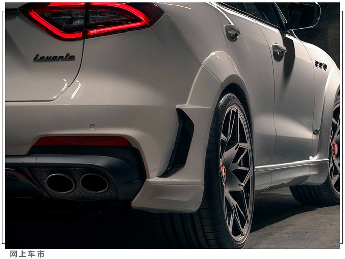 Levante (配置|询价)是玛莎拉蒂旗下的中大型SUV,其市场定位要略高于梅赛德斯-奔驰GLE (配置|询价)、宝马X5、奥迪Q7 (配置|询价)等。近日海外媒体曝光了一组由德国汽车改装厂Novitec操刀打造的玛莎拉蒂Levante车型图片。新车外观加入了定制的碳纤维空气动力学套件以及车身宽体套件,并对空气悬架进行了调整,且换装了22寸炭黑铝合金轮毂。新车将搭载一台升级后动力引擎,最大功率可达459kW,峰值扭矩820N.m,传动系统或将匹配8速手自一体变速箱,并配备四驱系统,其动力参数相比基础款车型大幅提升。