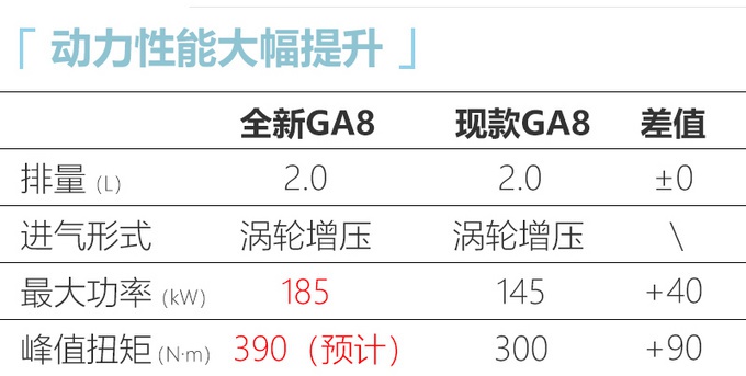 相比于车身尺寸的细微变化,全新一代传祺GA8在动力方面的提升更加令人惊喜。其搭载的是广汽集团现阶段技术水平最高的390T发动机,匹配AT变速箱,每百公里综合油耗7.8升,这个成绩对于这种块头的车型来说还是很可观的。根据现款GA8的定价规则,我们预计新车的起售价或在16万元左右。