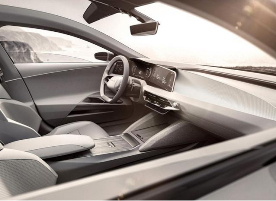 内饰方面,并没有一味地跟随特斯拉,在中间放置一块超大的屏幕,而是采用了三块屏幕进行折叠组合,营造出一种曲面屏的感觉,其余部分则非常简洁。