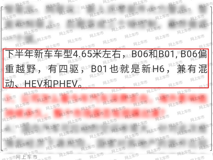 长城汽车今年下半年将推出代号为“B01”、“B06”的两款重磅车型。其中“B01”就是哈弗H6 (配置|询价)第三代车型的普通版,而“B06”为哈弗H6第三代车型的越野版,配有四驱。这种产品布局方式有些类似于德系某些车,例如大众Tiguan、Tiguan Offroad。日前网上车市获得了这两款车的外观造型图。从轮廓我们大致可以看到,“B06”的整体造型更加硬派,有点“福特F-150 (配置|询价)猛禽”的韵味。