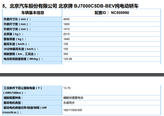 在此次在新能源推广目录中,我们同样发现了一款BEIJING-EU5新增车型,相较于现款车型,该车最大的变化在于换装了磷酸铁锂电芯,并且续航里程有所下降,结合北汽新能源目前的产品布局来看,本次曝光的EU5 R400车型很有可能会面向特定场景市场销售。