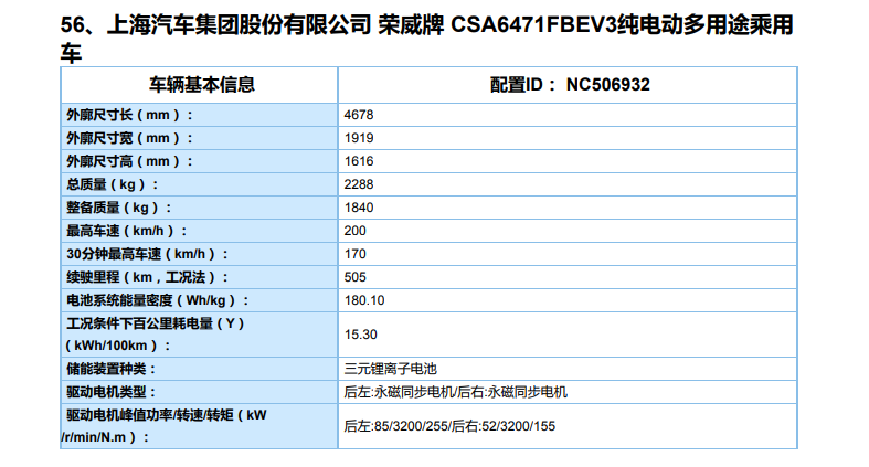 另外从申报信息来看,新车在动力方面也与老款车型有所不同,新款车型的电机最大功率达到了120千瓦、最大扭矩255牛米(老款车型最大功率85千瓦、最大扭矩255牛米),续航为416公里,相比现款续航里程420公里少了4公里,但磷酸铁锂电池的使用寿命要高于三元锂电池,同时磷酸铁锂电池的安全性更高,受到挤压或穿刺时基本不会出现明火。因此,我们很期待看到搭载磷酸铁锂电池的荣威Ei5推出。