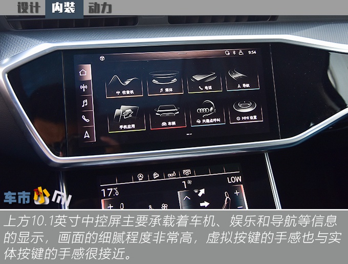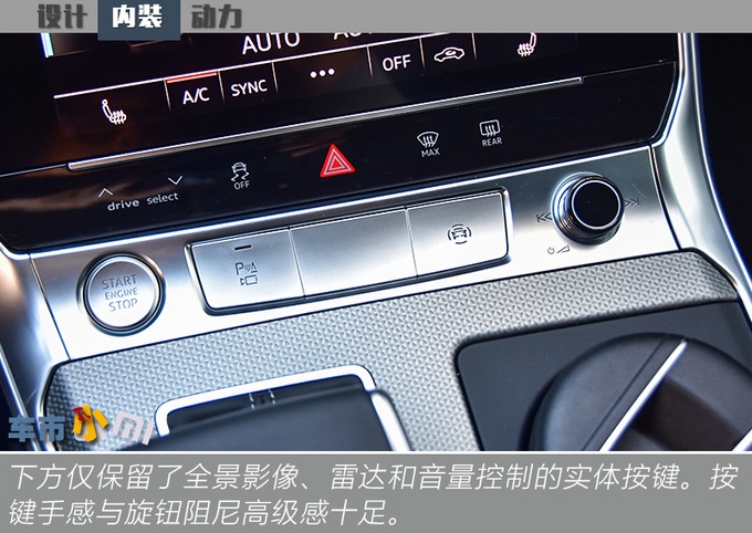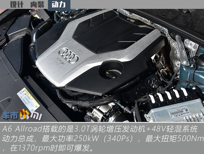 动力方面,与高配的奥迪A6L一样,3.0T+48V的动力系统可爆发出惊人的340Ps马力,与之相匹配的是7速双离合变速箱。底盘部分,采用quattro四驱系统,最亮眼的当属空气悬架,软硬高低均可调节,可胜任不同路况的驾驶。