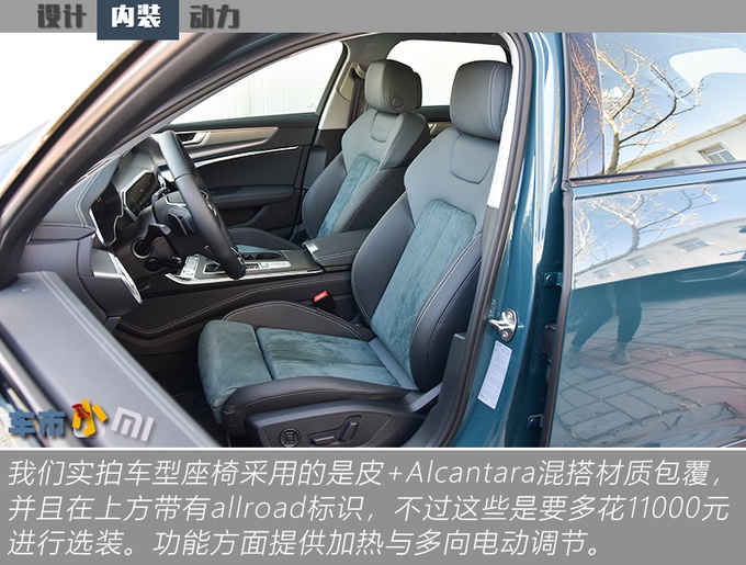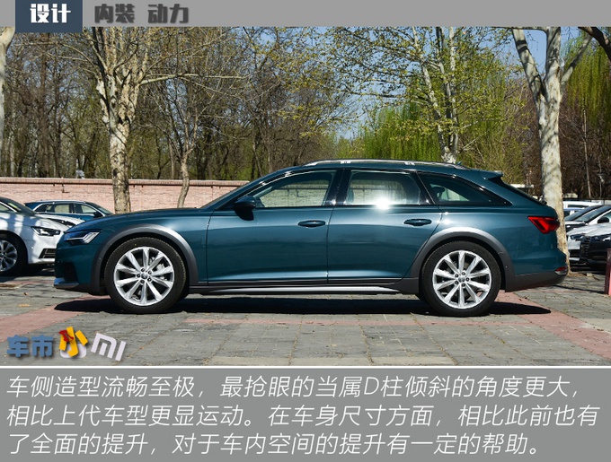 新车基于现款奥迪A6打造,故在外观方面与其有着很多的相同点,而最大的区别则在于前进气格栅的样式,车型采用的黑色轮眉、侧裙和行李架设计,越野感十足,也可以更好的却别新车与Avant的差异。尺寸方面,新车的长宽高分别为4938 /1898/ 1534mm,轴距为2905mm,相比奥迪A6L小了一圈,但它德味更纯正。在配置方面,Allroad车型全新仅一款车型,外部配置自然会很丰富,但要拥有一辆更完成的车型,需要选装的还有很多。