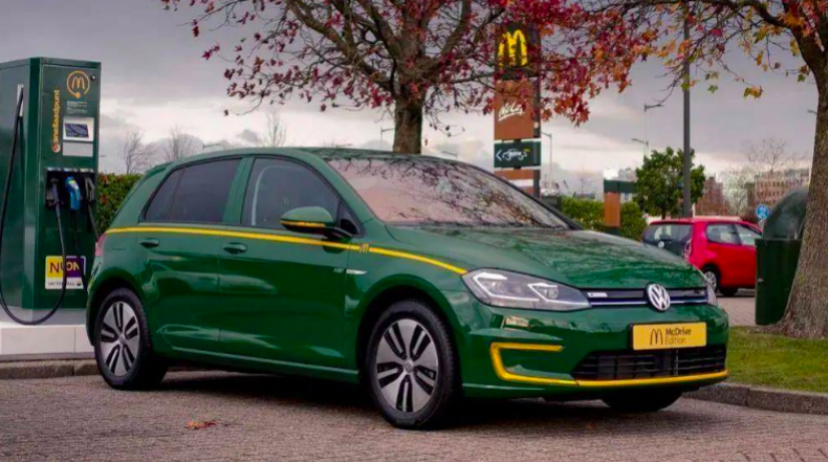看到文章标题的一瞬间,你是不是饿了?这台小车只能点麦当劳吗?盖饭能捎带手来一份儿吗?不好意思,这台电动版的e-Golf只能点麦当劳,因为它们是“合作款”!