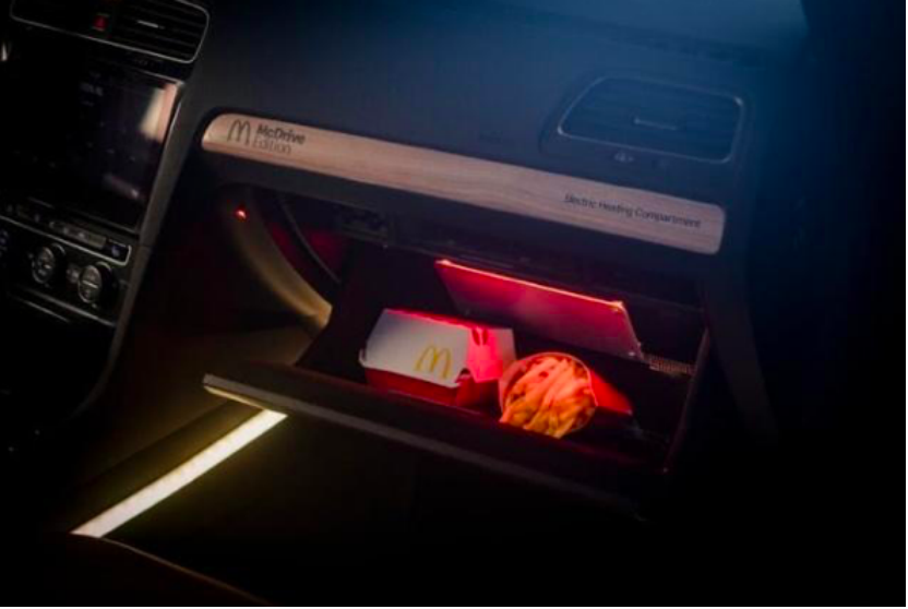 这个能给汉堡薯条加热的手套箱更是特别,与其说它是加热箱,倒不如说是保温箱更贴切。它可以通过空调的温度,给手套箱里存放的食物进行加热,如此贴心的设计,对于我这种爱吃麦当劳的同学来说,真的是相当有爱了。